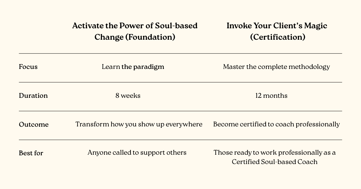 What if lasting transformation happens when you invite change rather than force it? When you hold space and use Soul-based Coaching skills that are so powerful that people can access their own inner wisdom. And heal, grow, and transform in real time.